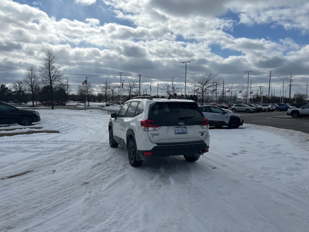 Fox Subaru of Macomb is proud to offer this 2025 Subaru Forester Wilderness in Crystal White Pearl, a one owner, clean CARFAX, low miles SUV that is adventure-ready and Subaru Certified for maximum confidence. This Certified Pre-Owned 2025 Forester Wilderness comes backed by a 7 year or 100,000 mile Powertrain Warranty, making it a top choice for shoppers searching for a reliable AWD SUV for sale near Macomb. Built with Subaru Symmetrical All-Wheel Drive and the rugged Wilderness Package, this Forester is designed for off-road capability, overlanding adventures, and confident all-weather driving. Stand out with 17-inch Matte Black Finish Aluminum-Alloy Wheels, aggressive Wilderness styling, and a Power Panoramic Moonroof that brings the outdoors inside. Enjoy premium comfort and technology including Heated Front Seats, a Power Driver Seat, Navigation System, Subaru 8.0-inch Multimedia Navigation System with Apple CarPlay and Android Auto, harman/kardon premium audio, and a convenient Power Rear Gate. Auto-Dimming Exterior Mirrors with Approach Light and an Auto-Dimming Mirror with Compass and HomeLink add everyday practicality to this trail-rated SUV. If you are searching for a 2025 Subaru Forester Wilderness for sale, a certified Subaru Forester with low miles, or a capable AWD SUV with navigation and panoramic moonroof, this Crystal White Pearl Forester Wilderness delivers bold style, advanced tech, and legendary Subaru reliability in one exciting package.