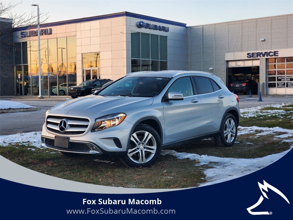 Fox Subaru of Macomb is thrilled to offer this 2015 Mercedes-Benz GLA 250 in striking Polar Silver Metallic, a luxury compact SUV that combines sporty performance, refined styling, and advanced technology. This used Mercedes-Benz GLA 250 for sale in Macomb, MI stands out with its 18" twin 5-spoke alloy wheels, front power seats, premium COMAND audio system, and rain-sensing wipers, delivering the perfect mix of comfort and sophistication. Under the hood, youll find a turbocharged engine that offers dynamic power and impressive fuel efficiency, making every drive both exhilarating and efficient. Ideal for drivers seeking a luxury crossover SUV with the versatility of an everyday commuter and the elegance of a Mercedes-Benz, this pre-owned 2015 GLA 250 offers timeless design and premium craftsmanship. Dont miss your chance to own this meticulously maintained and stylish used Mercedes-Benz GLA 250, available now at Fox Subaru of Macombwhere performance meets prestige.