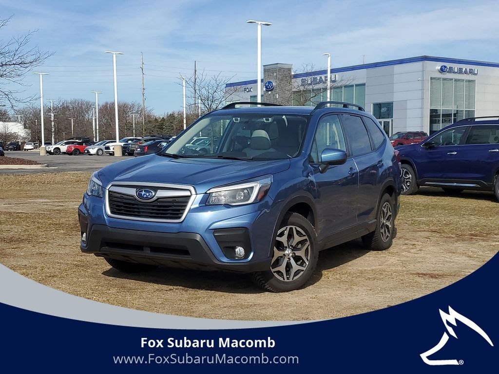 Adventure meets value at Fox Subaru of Macomb with this head-turning 2021 Subaru Forester Premium in stunning Horizon Blue Pearl. This Clean CARFAX, Subaru Certified SUV is the perfect blend of capability, technology, and all-weather confidence, powered by legendary Subaru Symmetrical All-Wheel Drive and backed by a 7-year/100,000-mile Powertrain Warranty for ultimate peace of mind. Packed with todays most sought-after features, this Forester Premium includes Blind Spot Detection (BSD) with Rear Cross Traffic Alert (RCTA), a Power Rear Gate with Automatic Close and Height Memory, and a panoramic power moonroof that opens up every drive. Stay connected with STARLINK featuring Apple CarPlay and Android Auto, while heated front bucket seats and a Multi-Function High Grade Display elevate comfort and convenience. Sitting sharp on 17" x 7.0J Black Machine Finish Alloy Wheels, this fuel-efficient compact SUV is ideal for commuters, families, and adventure-seekers searching for a reliable AWD crossover with advanced safety technology. If youre shopping for a certified 2021 Subaru Forester Premium for sale near Macomb, MI with low ownership history and premium features, this one delivers standout value, top resale reputation, and the versatility Subaru drivers love.