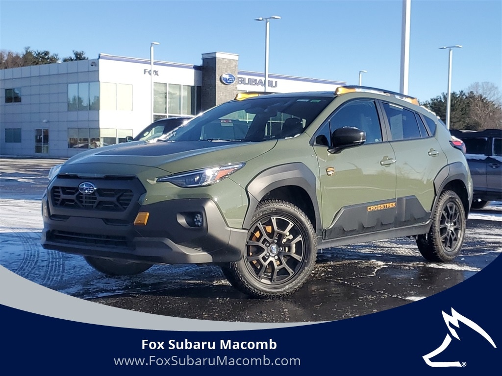 Fox Subaru of Macomb is excited to offer this 2024 Subaru Crosstrek Wilderness in Alpine Green. This one-owner, clean-Carfax, Subaru Certified vehicle comes with a 7-year/100,000-mile powertrain warranty for peace of mind. Equipped with Subaru's Symmetrical All-Wheel Drive, 9.3 inches of ground clearance, and a rugged 2.5L BOXER engine, the Crosstrek Wilderness is built for adventure. Inside, enjoy heated front seats, StarTex upholstery, and a large 11.6-inch STARLINK touchscreen with Apple CarPlay and Android Auto. Exterior features include bold 17" matte-black alloy wheels, auto-dimming mirrors, and a sleek skid plate. With advanced safety features like EyeSight Driver Assist, this versatile SUV is perfect for both urban commutes and off-road explorations. Stop by Fox Subaru of Macomb today and experience the adventure-ready 2024 Crosstrek Wilderness!